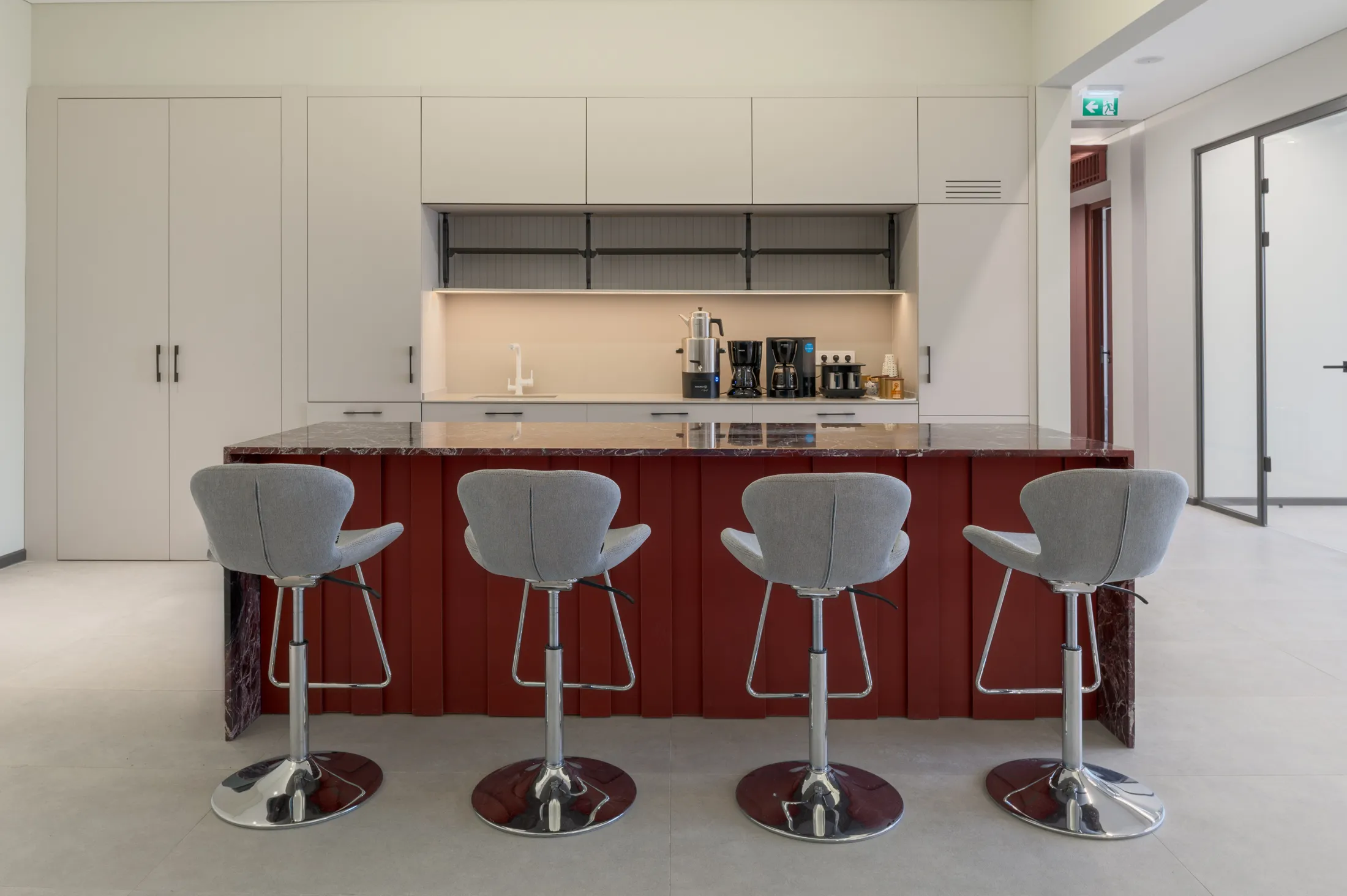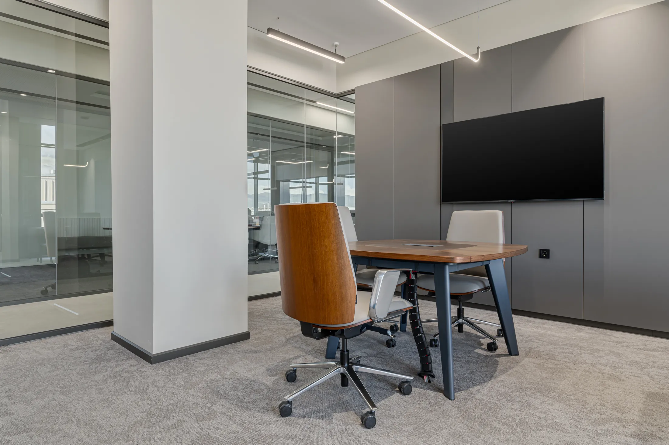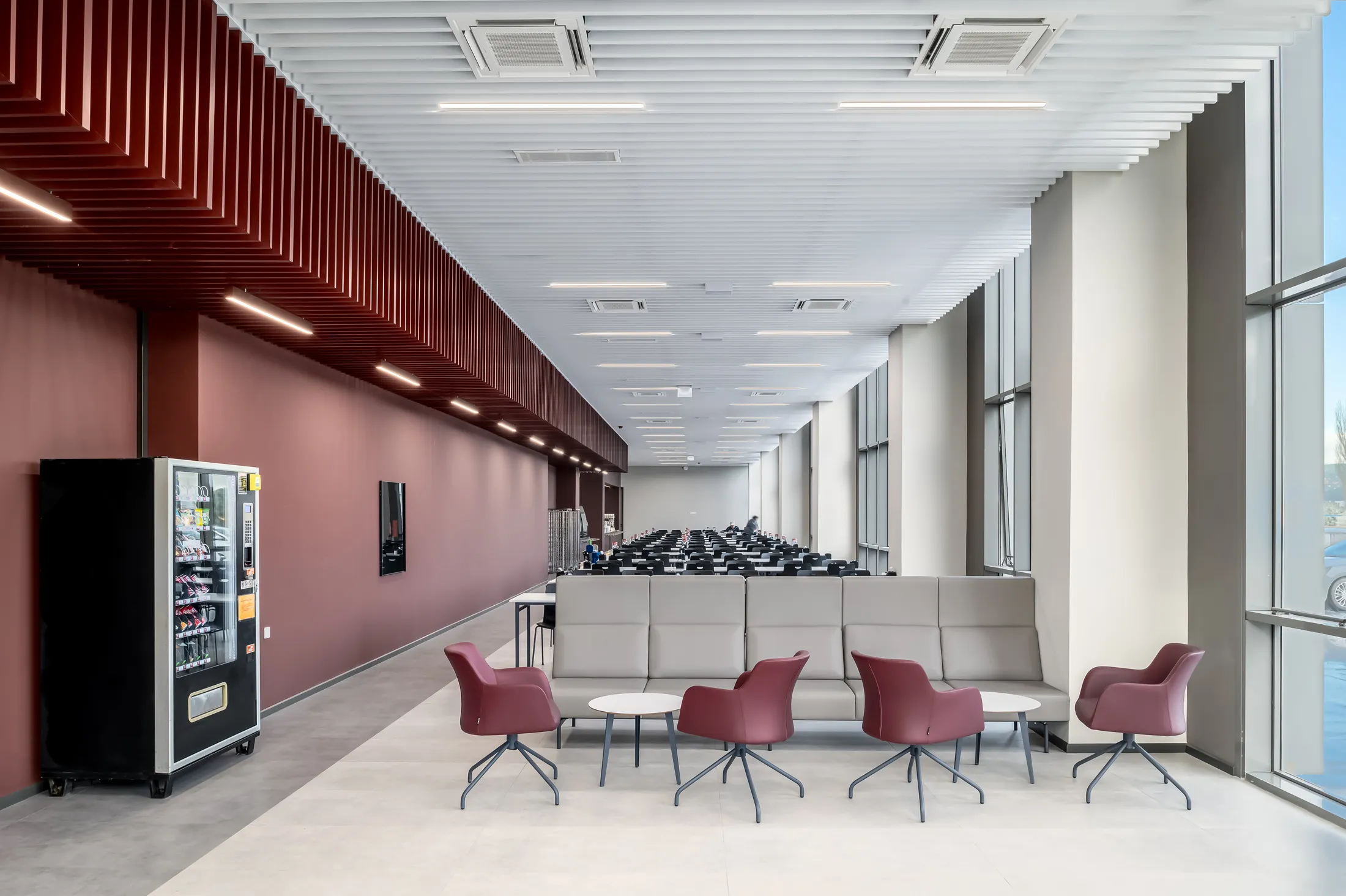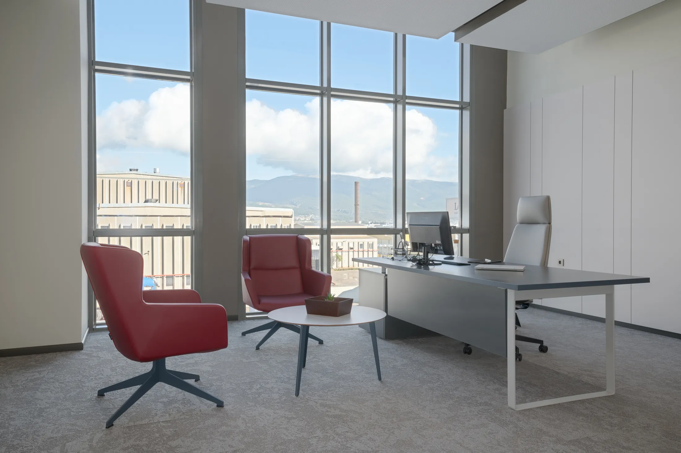 Habitat Design Team imzası taşıyan projede, sabit ve hareketli mobilyalar Yenkur tarafından çözümlendi. Genel müdür ve yönetici ofislerindeki duvar kaplamalarından, yemekhanedeki bordo detaylara; kitchenette alanlarından koridor ve bekleme alanlarına kadar tüm sabit mobilyalar Yenkur imzası taşıyor. Hareketli mobilyalarda ise İtalyan tasarımı ofis ürün grubumuzu, hem operasyonel hem de yönetici ofislerinde kullanmış bulunmaktayız. Her detayda, işlevsellik, estetik ve kurumsal kimlik dengesi gözetildi.