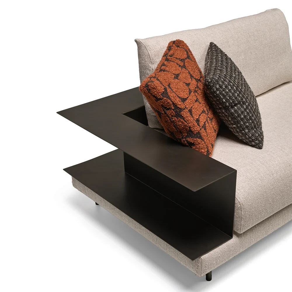 Şık deri sırt desteğinin yanı sıra kitaplık köşe modülü ile farklı fonksiyonlara da imkan sağlayan Anton, kanepe olarak da kullanılabiliyor.