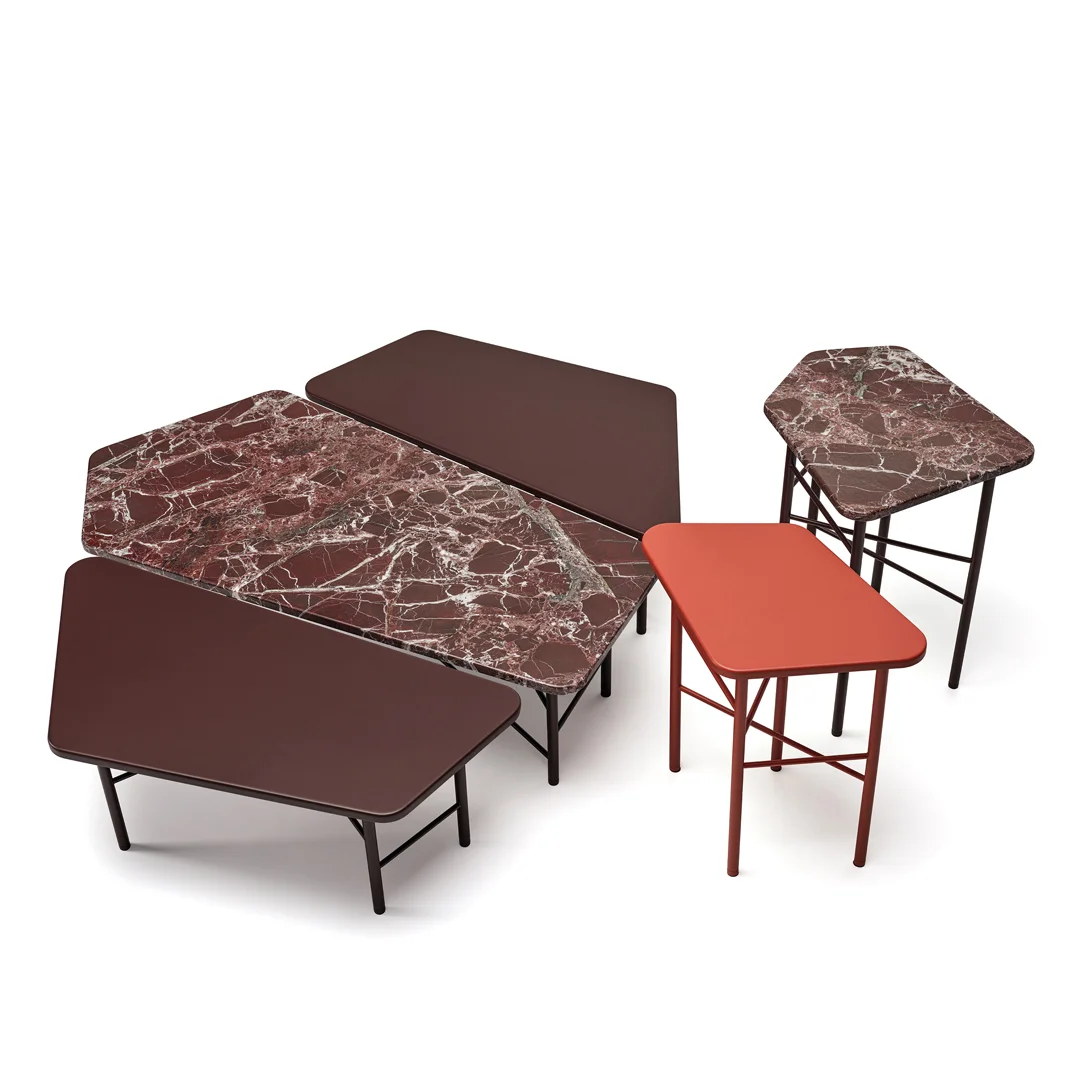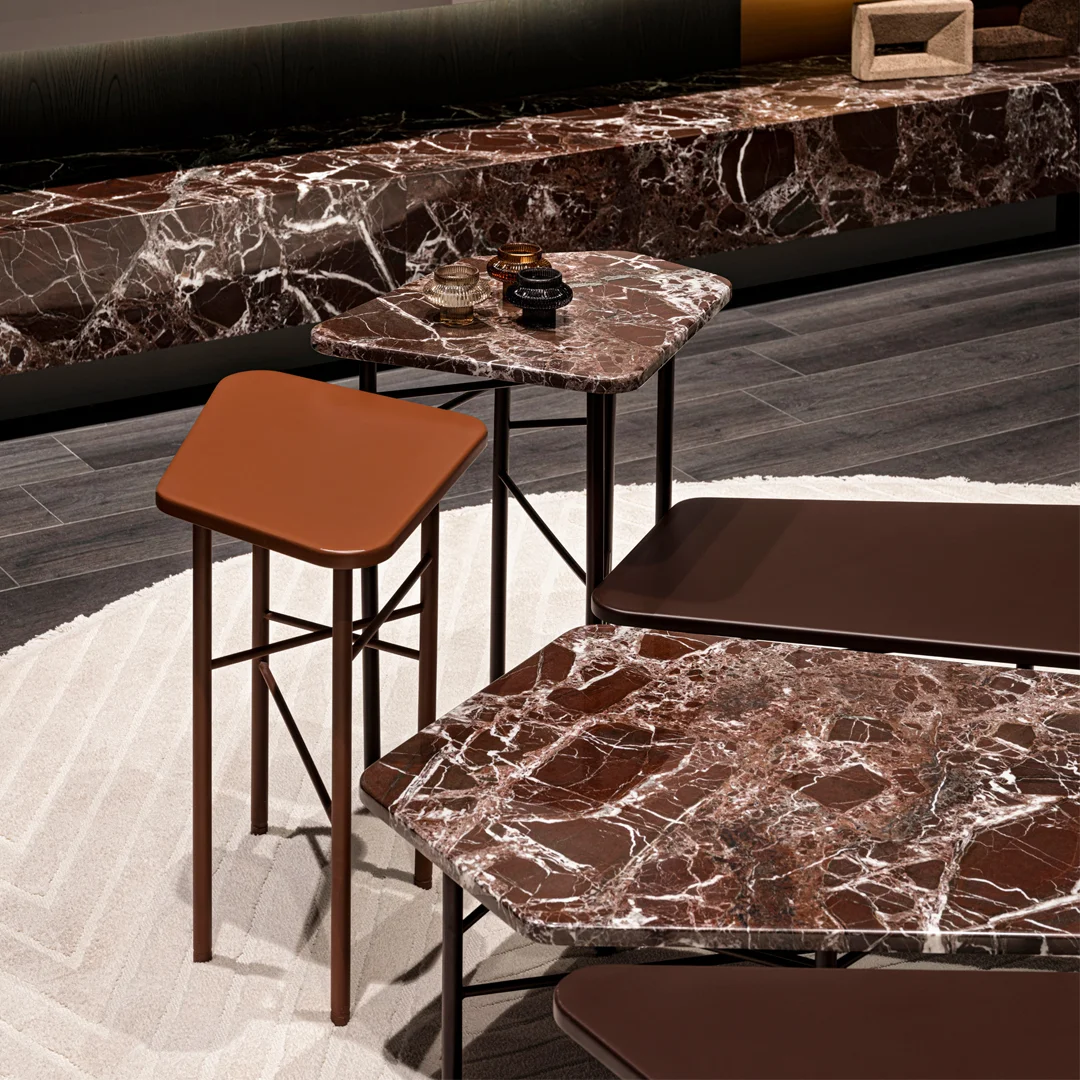 Farklı formlarda tabla seçenekleri ve planda yıldız haritalarından esinlenen ayak dizilimi ile Astro sehpa doğal mermer ve ahşap tabla seçenekleri ile sunuluyor.