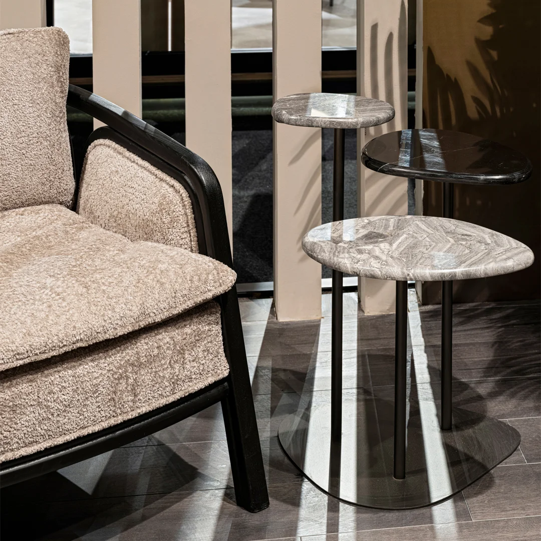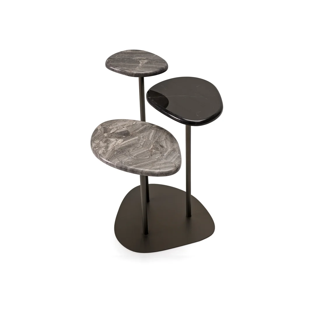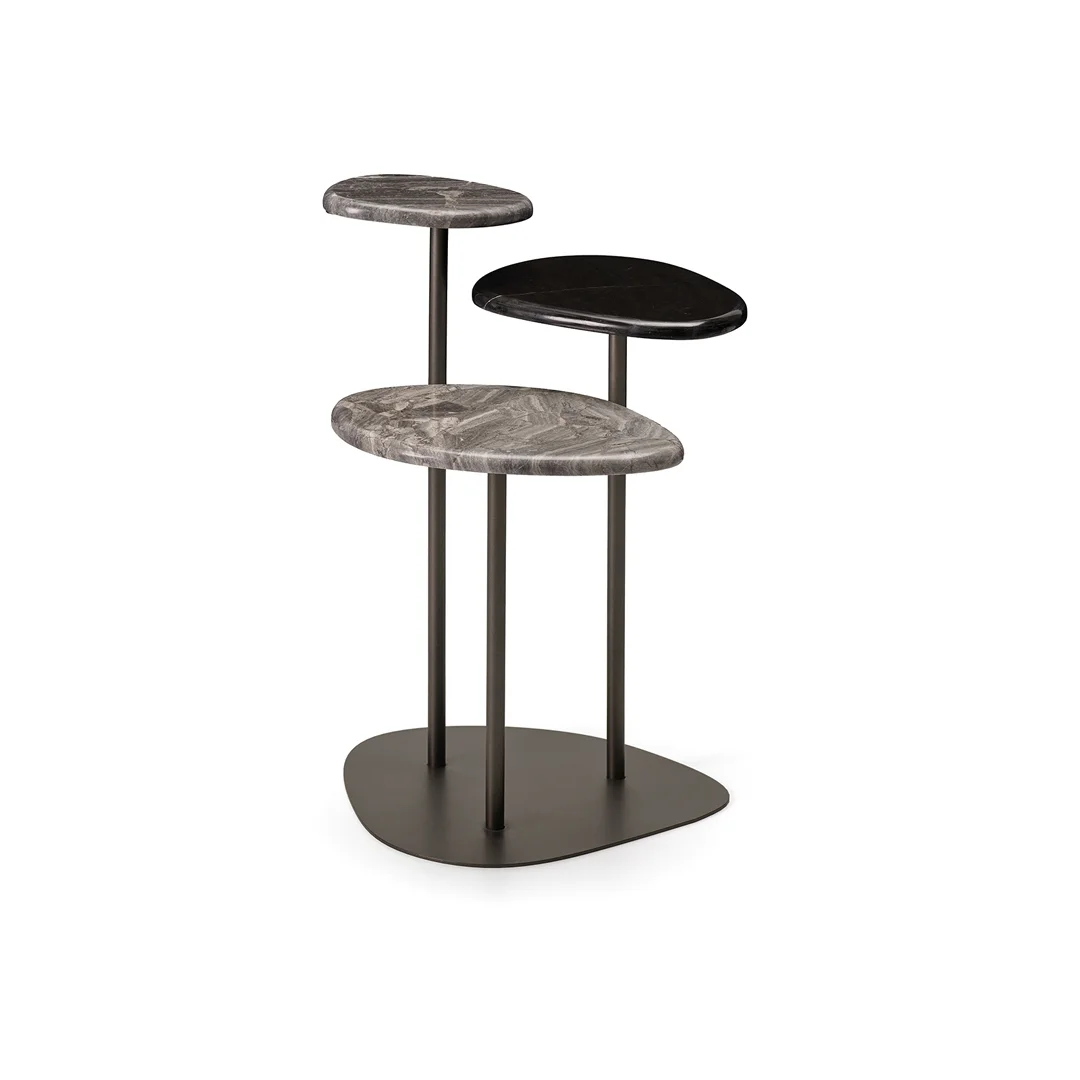 Doğal taş formundan esinlenilen tasarımı ile Club sehpa farklı kademelerdeki yüzeyleri sayesinde kullanım esnekliği sağlıyor.